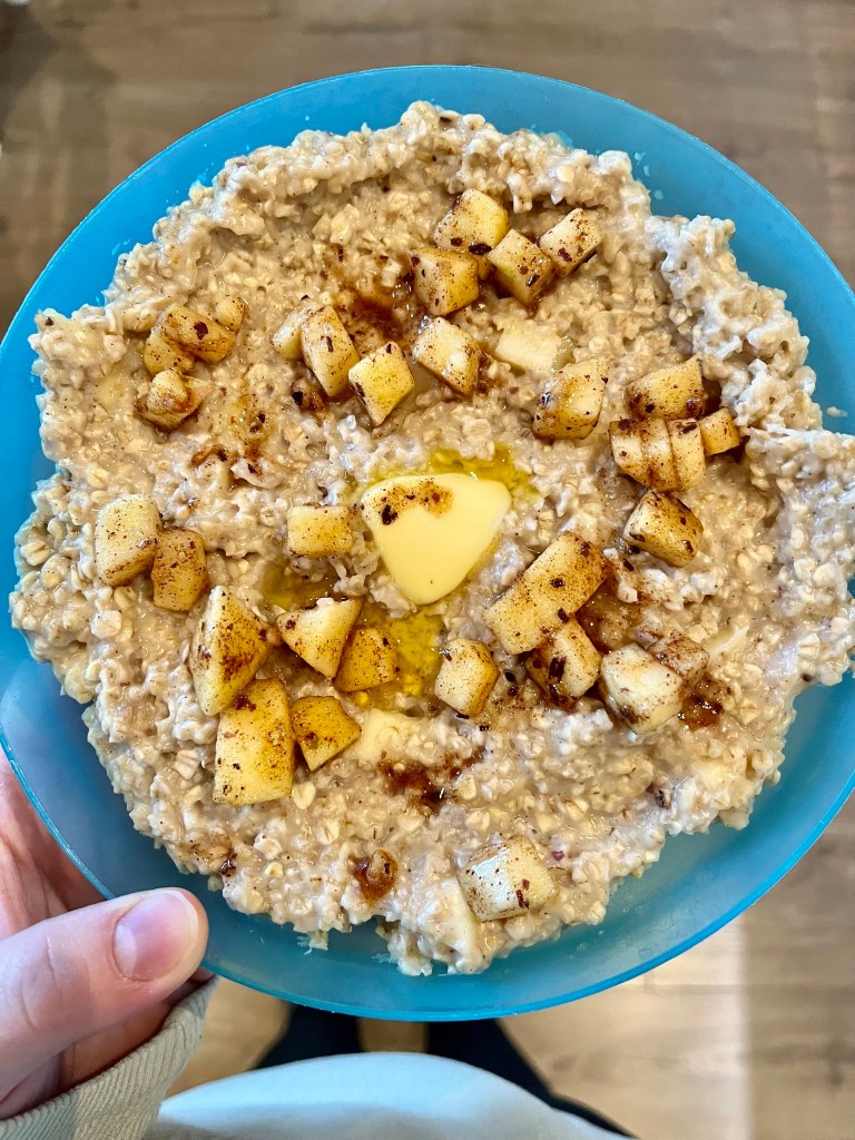 Inspirert av @kennyskjokken ble det havregrøt med epler, kanel, sukker og tørket søl på småfiskene i går kveld. De likte det så godt at restene blir lunsj i dag. Finfin måte og inkludere tare i kosten på. 😄